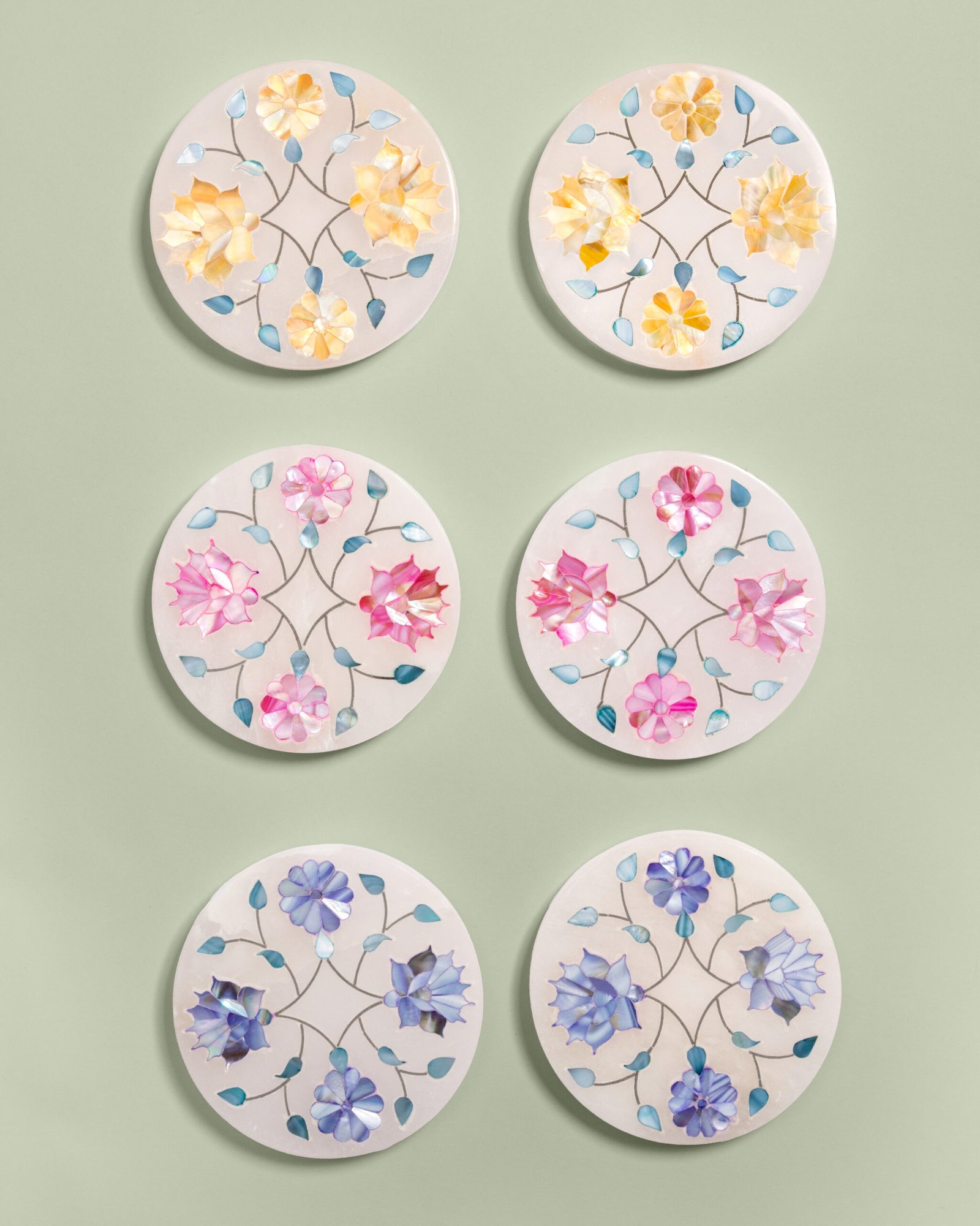 This housewarming basket includes: Aromatherapy lavender eye pillow Aromatherapy lavender pack Set of two mother of pearl inlay coasters Mug Herbal tea Basket size: Large