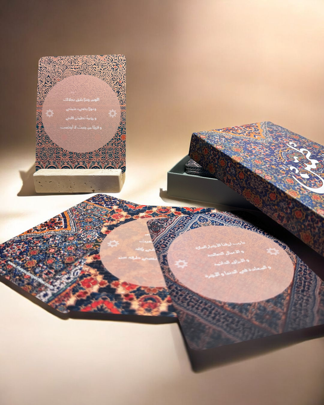 Box of prayer cards with travertine stand