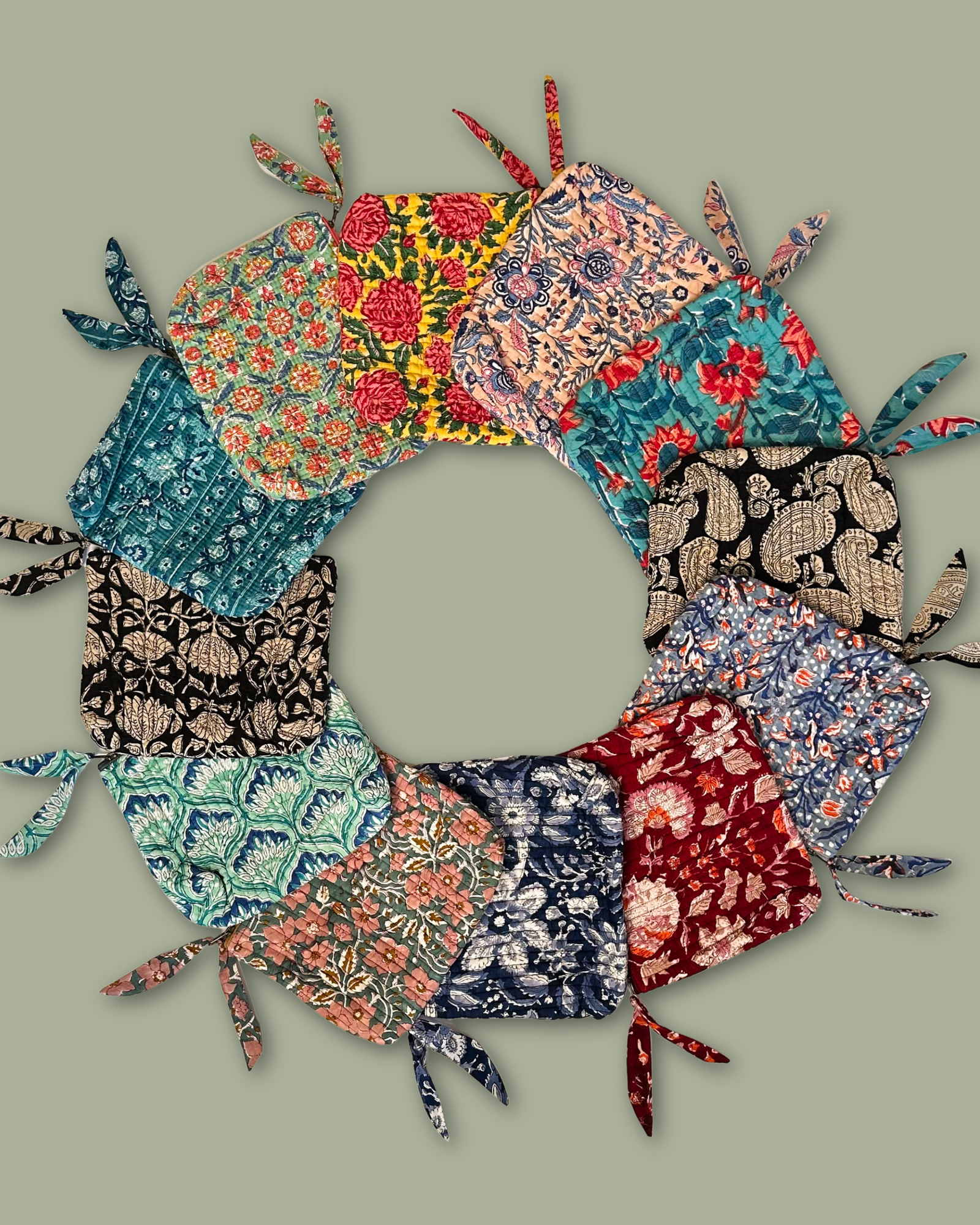 Hand-block printed, pure cotton quilted bags.